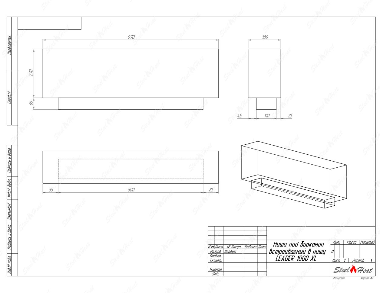 Встраиваемый Биокамин SteelHeat LEADER-SH 1000 XL предназначен для встраивания в глухие ниши из гипсокартона, кирпича, пеноблоков, бетона.
