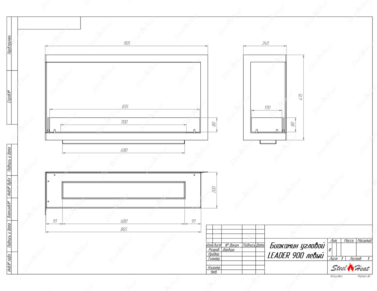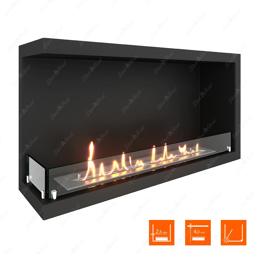 Встраиваемый Биокамин угловой SteelHeat Leader 900 левый предназначен для встраивания в глухие ниши из гипсокартона, кирпича, пеноблоков, бетона.