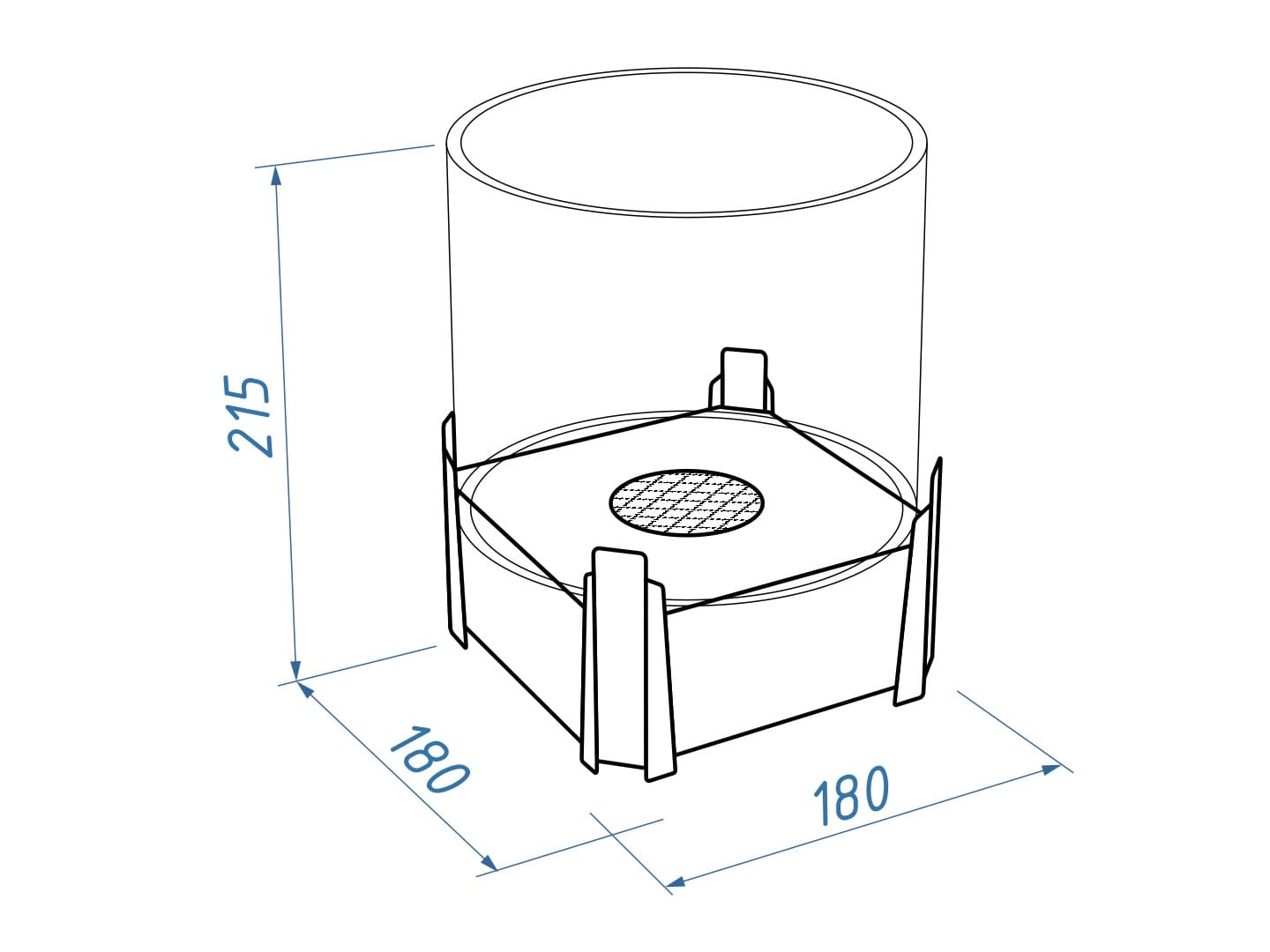 Представляет собой металлический внешний корпус с встроенным топливным блоком Lux Fire 150-2 на декоративных ножках в виде Тельца. Огонь ограничивается стеклянным закаленным плафоном диаметром 180 мм.Среднее время горения 3 часа
